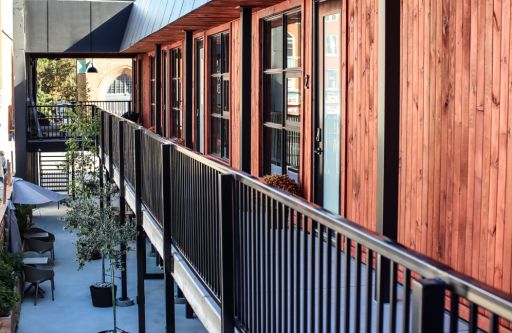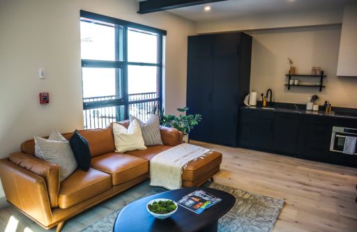 Op de eerste verdieping, die via twee trappen is te bereiken, zijn een vijftal luxe Air BnB appartementen gesitueerd. BMI had al een goed lopende Air BnB formule en deze kamers zijn daar aan toegevoegd. In een cultuurstad als Stratford, die per jaar ruim 1 miljoen toeristen ontvangt, vinden deze appartementen gretig aftrek. Samen met het restaurant zorgt dit voor de gewenste huurstroom om gezond rendement te maken op deze voltooide belegging.
